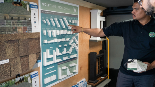 Review siding, roofing, trim, and decking materials in one organized space.